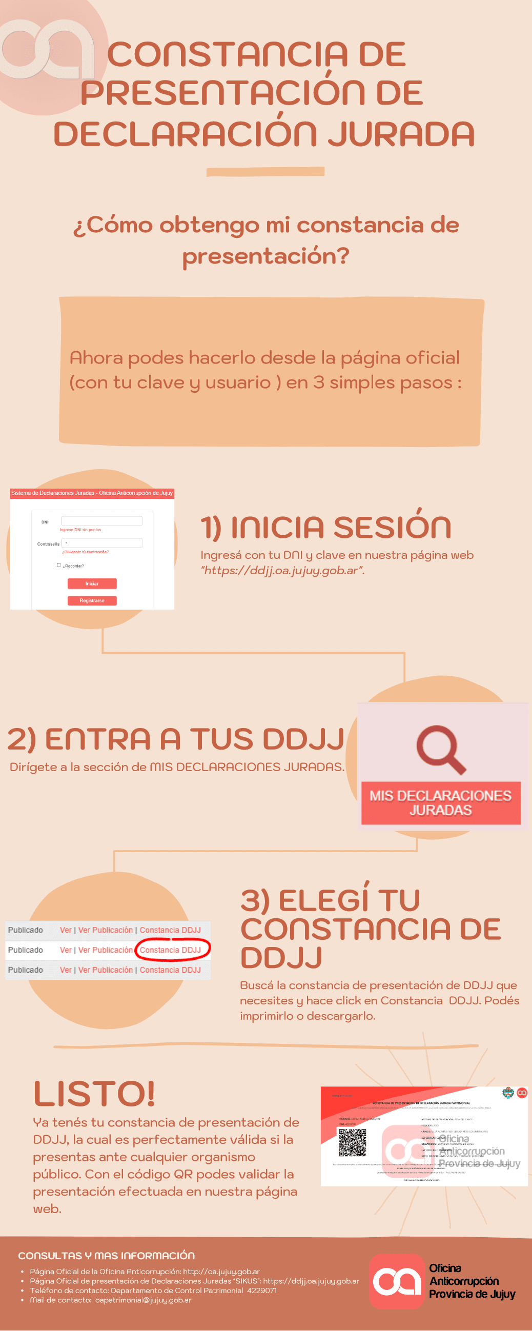 Noticias Presentamos una infografía para aprender a descargar la Constancia Electrónica con QR de presentación de DDJJ, la misma la visualizamos a continuación: Para visualizarlo en pagina completa y/o descargarlo hace Clic Aquí